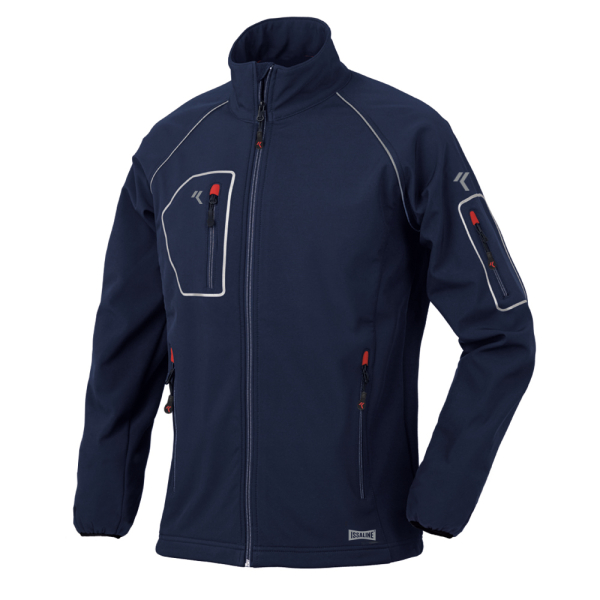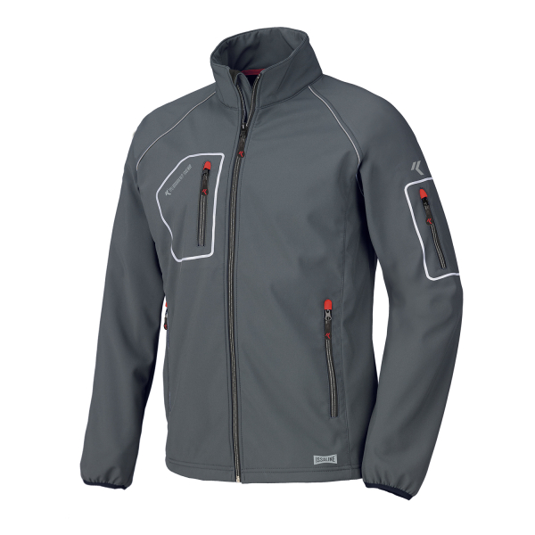 SOFT SHELL radna jakna sa 4 džepa, od izuzetno mekog tehničkog materijala. Ima paspule od reflektujuće trake. Isporučuje se sa praktičnim roler priveskom za ključeve.