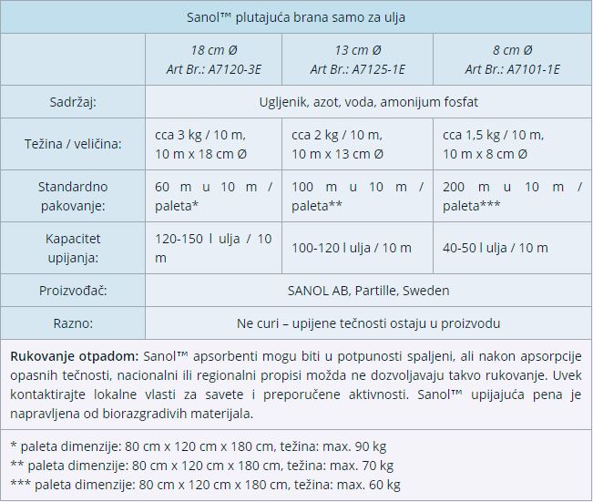 | Naziv proizvoda: | Sanol™ Plutajuća brana samo za ulja |
