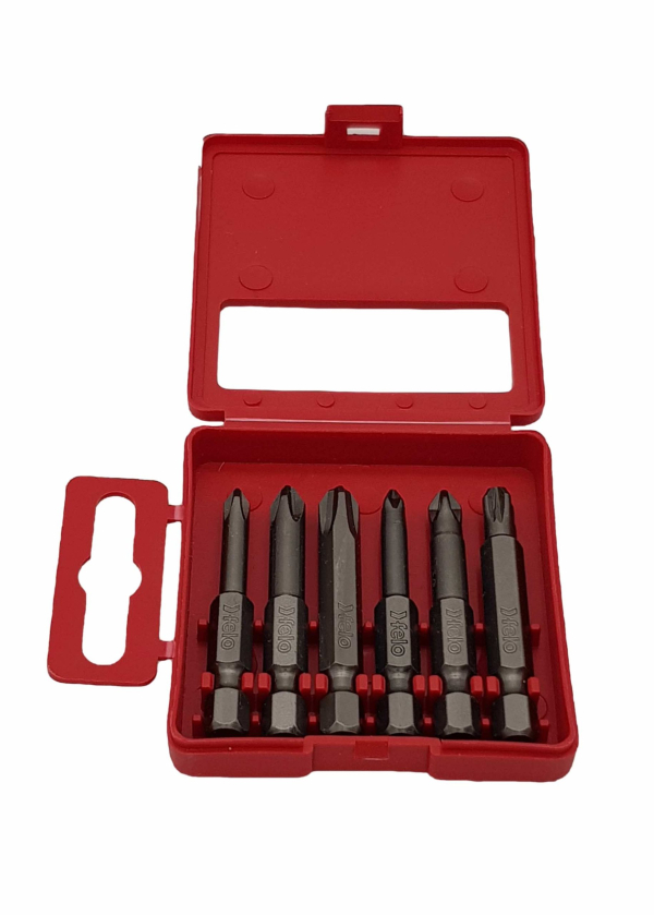 Set uključuje 3 Phillips i 3 Pozidriv Industrial bitovi dužine 50 mm. Isporučuje se u kompaktnom plastičnom kućištu.