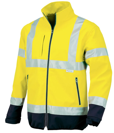 Sertifikovana softshell jakna visoke vidljivosti; sve prednosti ovog materijala (lakoća, prozračnost, vodootpornost, otpornost na vetar, dobar toplotni koeficijent) za one koji treba da budu vidljivi. Odeća ima tri spoljna i tri unutrašnja džepa, od kojih je jedan držač za mobilni telefon. Opremljen praktičnim držačem za ključeve.