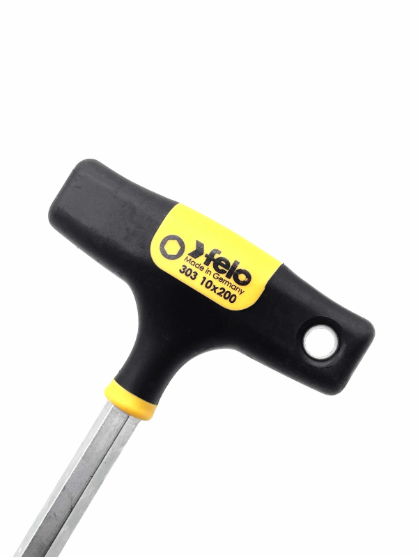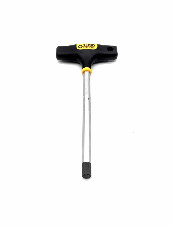 Profesionalni šrafciger sa T-ručkom HEX Felo 10,0 x 200 30310760 za vijke sa šestouglom glavom sa dužinom oštrice od 200 mm. Dvokomponentna ručka sa mekim spoljnim Soft-Grip premazom šrafcigera je napravljena od plastike otporne na oštećenja i agresivna okruženja.