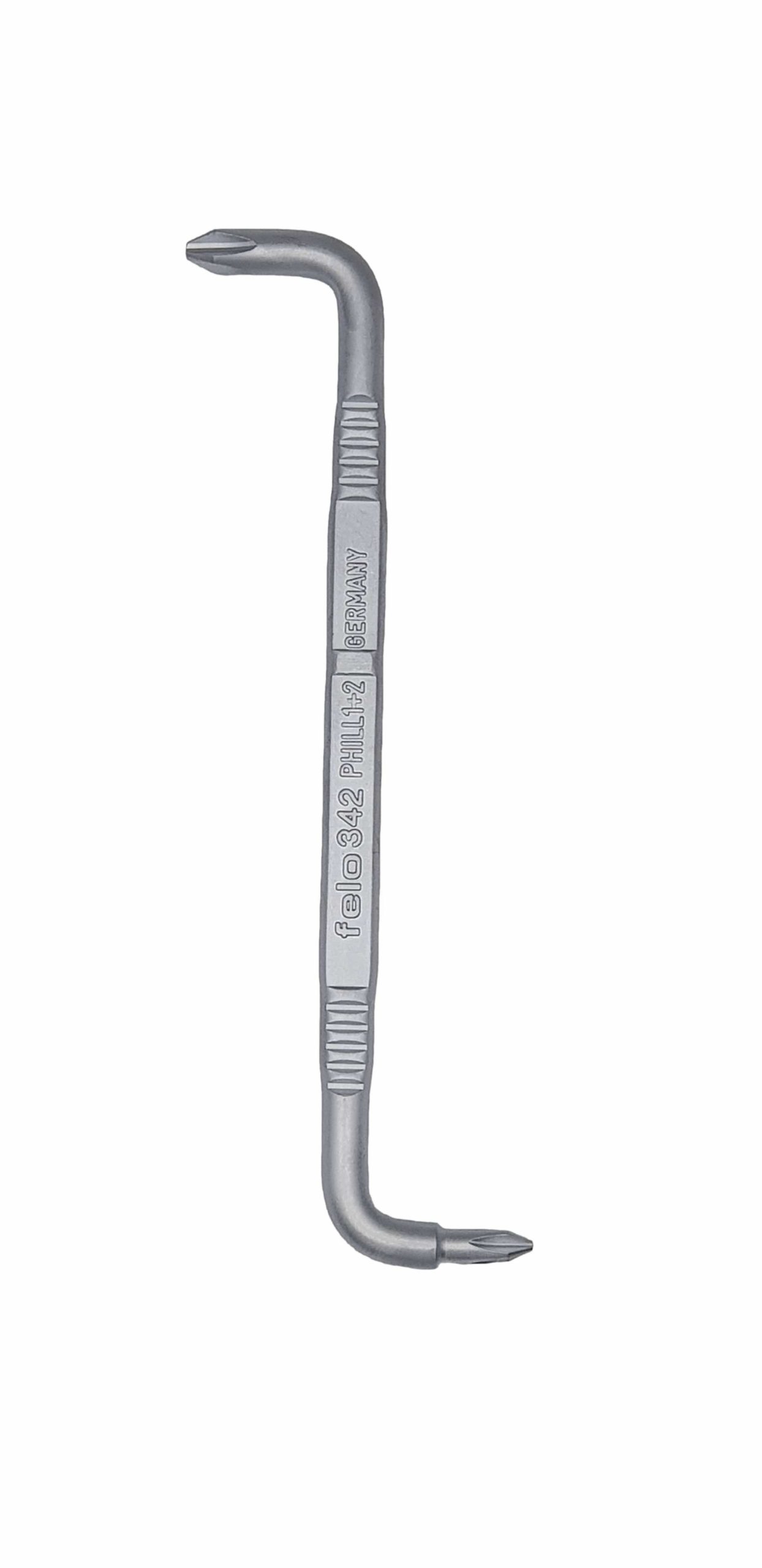 Pogodan i pouzdan Phillips PH1/PH2 x 135 mm dvostrani šrafciger u obliku slova Z Phillips PH1/PH2 x 135 mm 342 120 00 Dužina 135 mm. Izrađen od visoko legiranog hrom-molibden-vanadijum čelika sa mat hromiranim slojem. Sa oznakom veličine utora.